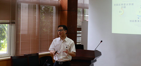 方益权副校长作“九色视频 产教融合实践探索”主题讲座。他在讲话中强调大学办学应融入区域文化与精神特质。产教融合可以加快培养具有温州人精神(“创业精神”,“自主精神”,“开拓精神”和“创造精神”)的应用型人才,是九色视频 作为一所温州人的大学所具有的特殊使命。同时,他指出产教融合是大势所趋,也是一场教学革命和创新,为社会主义现代化建设培养一批社会需要的人才。在全方位的社会和学校的双重影响下,让学生在校园里不仅仅能接触到理论基础的学习,更能够培养自身的产业技能和职业素养。与此同时,方益权副校长从十九大报告等国家层面,思考学校的弱点与痛点,如高素质应用性人才短缺,各类资源严重不足等问题,要求全体教师向应用型教师转变,带领学生走出象牙塔,积极参与社会活动,参加学科竞赛,让学生广泛接触社会,锤炼其自身素质,真正做到下得基层,上得讲台,育得英才。此外,教师应该以学生产出为本,提高教学成果,努力推动高校作为平台的知名度,吸引企业走进校园,让学生在校园里也能接受到社会的锻炼。另外,他要求学院努力完善产教融合的专创融合体系,积极开展课程融合,专业融合,融合特色班,毕业前后融合,本硕融合,师生融合,产业融合,校内外融合和国内外融合等产教融合实践,向社会要资源,开拓创新,为实现一流应用型大学而奋斗。