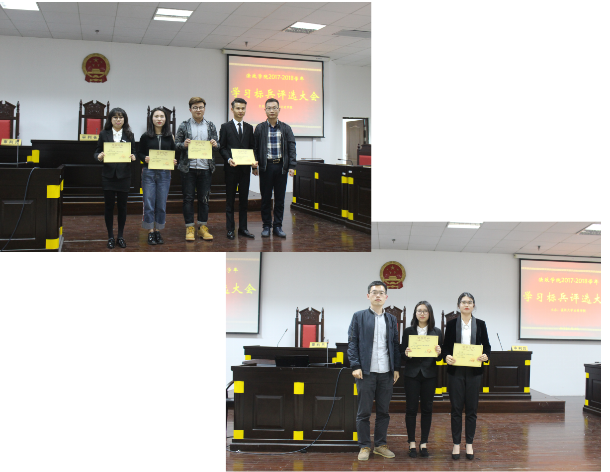 2017年11月15日晚,九色视频 法政学院2016-2017学年学习标兵评选大会在模拟法庭正式举行。参加本次学习标兵评选大会的候选人有14法三朱怡静、15法二朱佳敏、15政教叶必成、15行管张剑宇、16法二倪明雪、16法四宋卓君。担任本次评选的评委有法政学院学生科副科长、团委书记孙德升老师,法政学院学生科魏厚钱老师,法政学院学生会主席团成员章方正、祝瑞、颜林杰。
