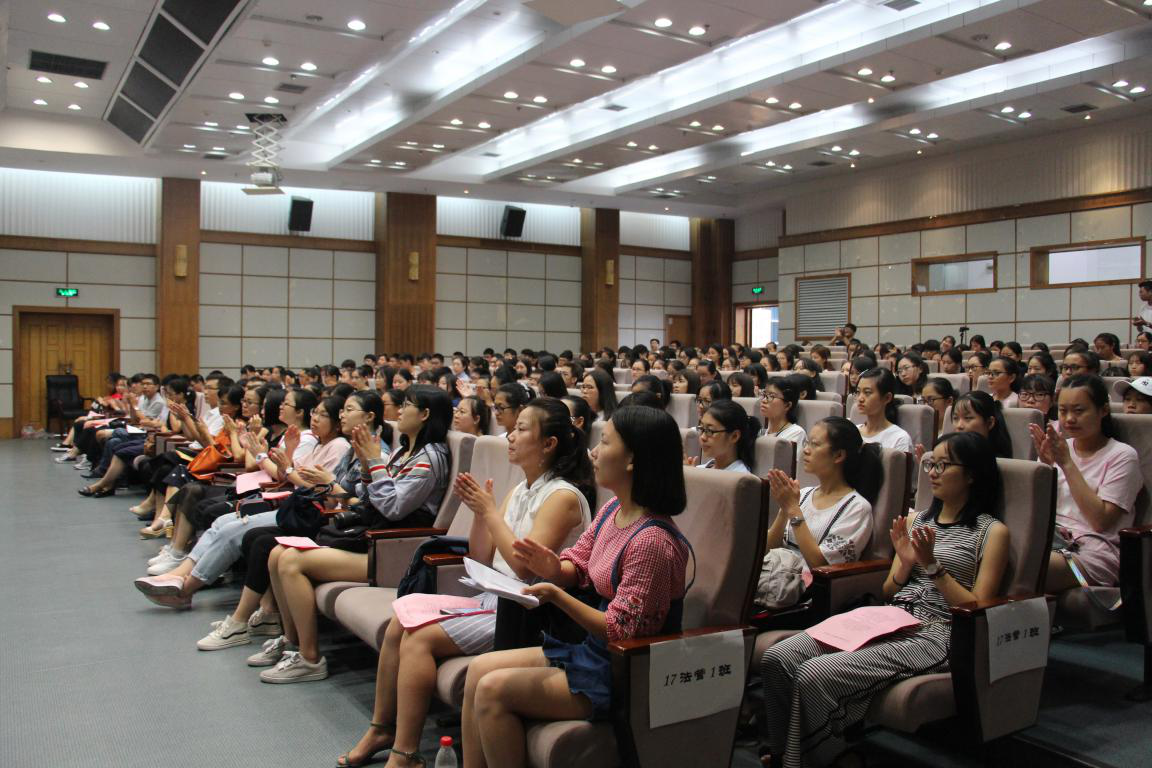 最受学生爱戴老师"称号的项一丛老师代表全院老师对2017级新生的到来表示热烈欢迎,项老师围绕大学生的自由与担当等学业学风话题娓娓道来,富有文采和哲思的发言赢得新生的阵阵掌声。老生代表、院学生会主席梅铁楠同学和新生代表孙丽娜同学也作了充满激情的发言,分别表达了作为法政学子在成长成才方面的决心和信心。紧接着,新"声"唱响环节由17级新生代表李淇、朱纯慧、梁绍麟、叶蓉菲、郑暄萱共同带来歌曲联唱,新生们精彩的表演瞬间点燃了会场的气氛,他们用歌声唱出了法政学子特别是17级新生共同的希望和梦想。随后,全体17级新生全体起立,庄严进行了新生入学宣誓;"一朝法政人,一生法政人",今天的入学宣誓许下的是一份承诺,扛起的是全体法政人的责任与担当。最后,法政学院学生科科长孙德升老师为大家介绍法政学院各学生组织社团的工作品牌,并与大家一同欣赏学院宣传片及品牌活动短片,使大家对法政学院有一个更为全面的了解。