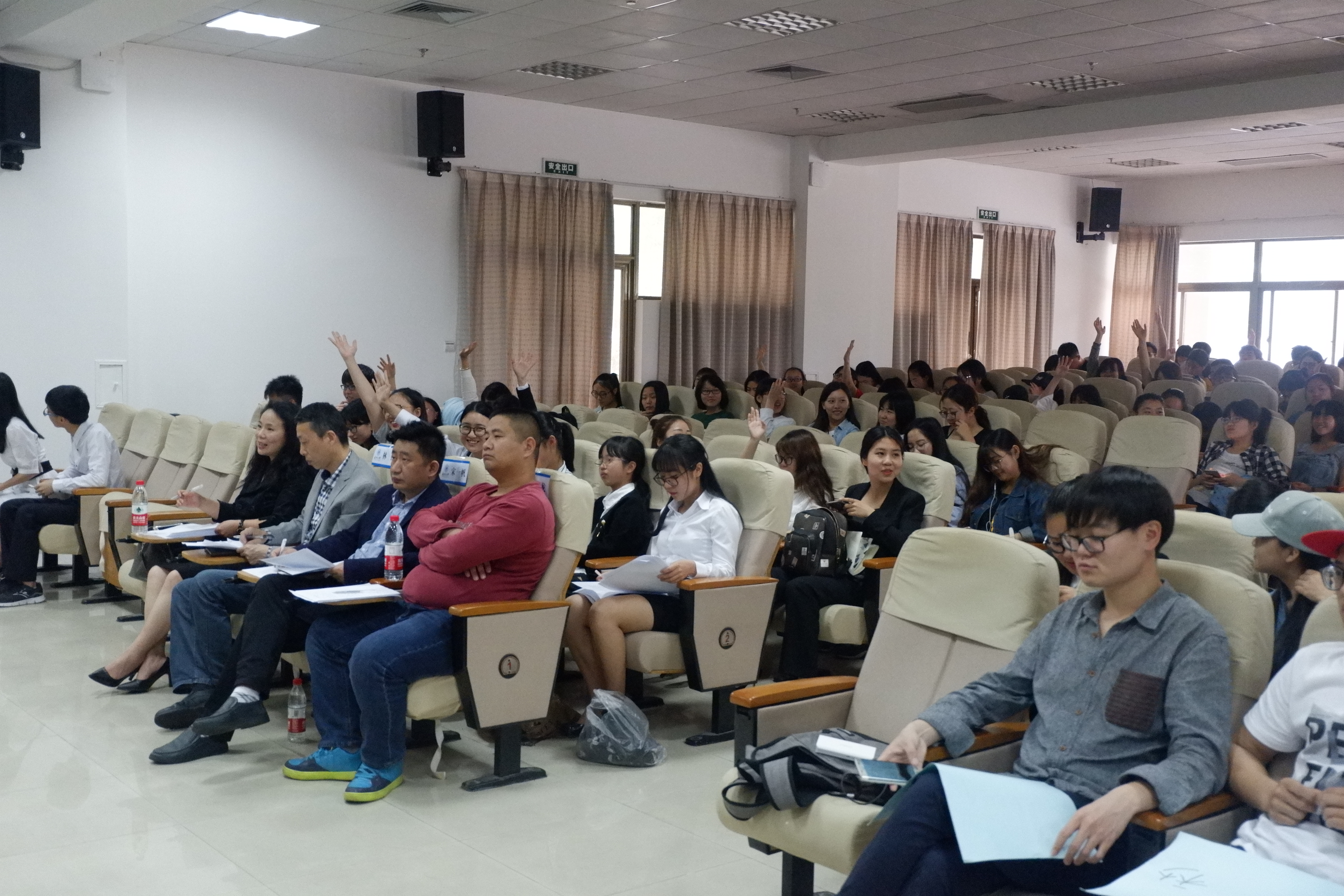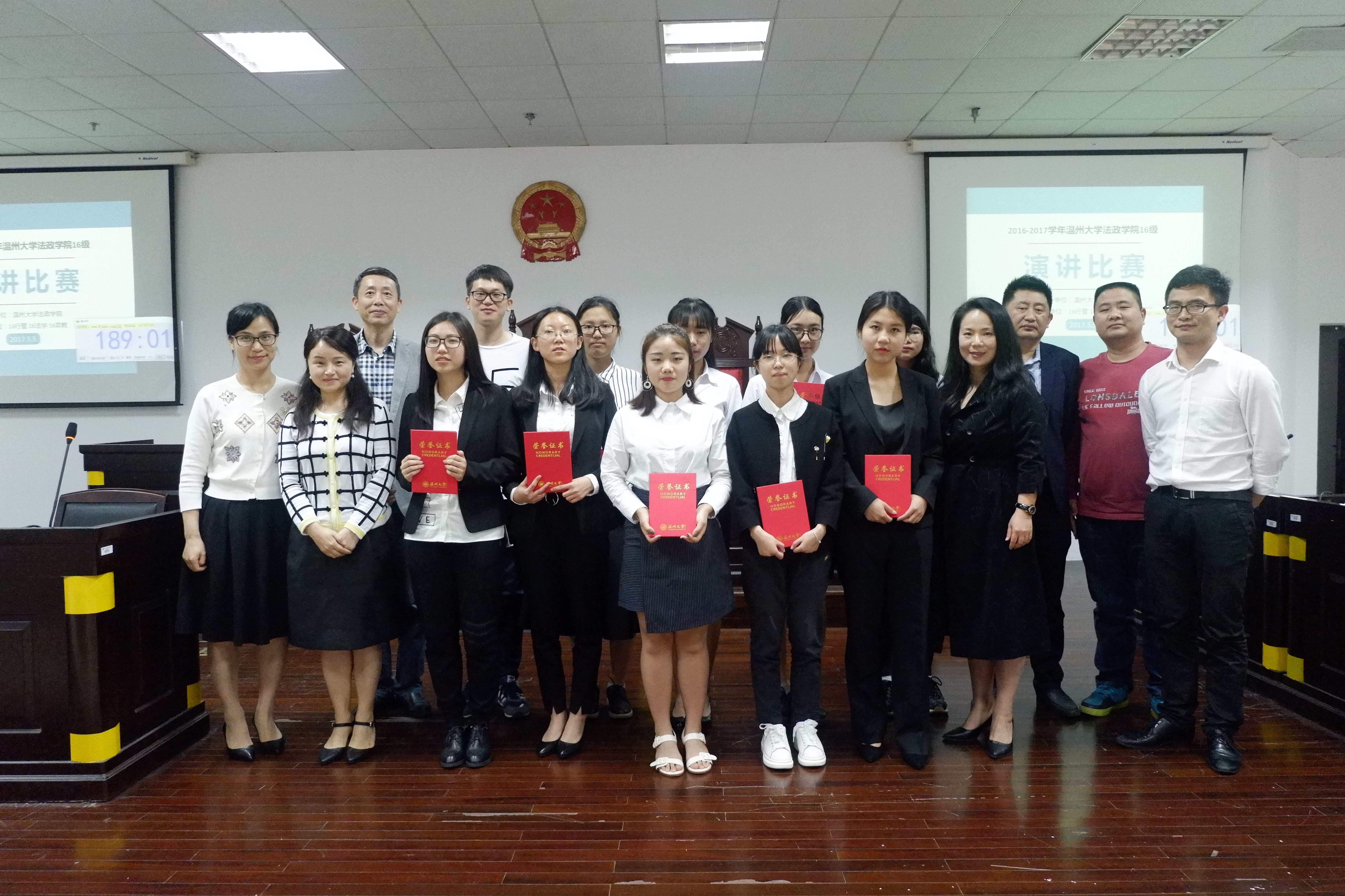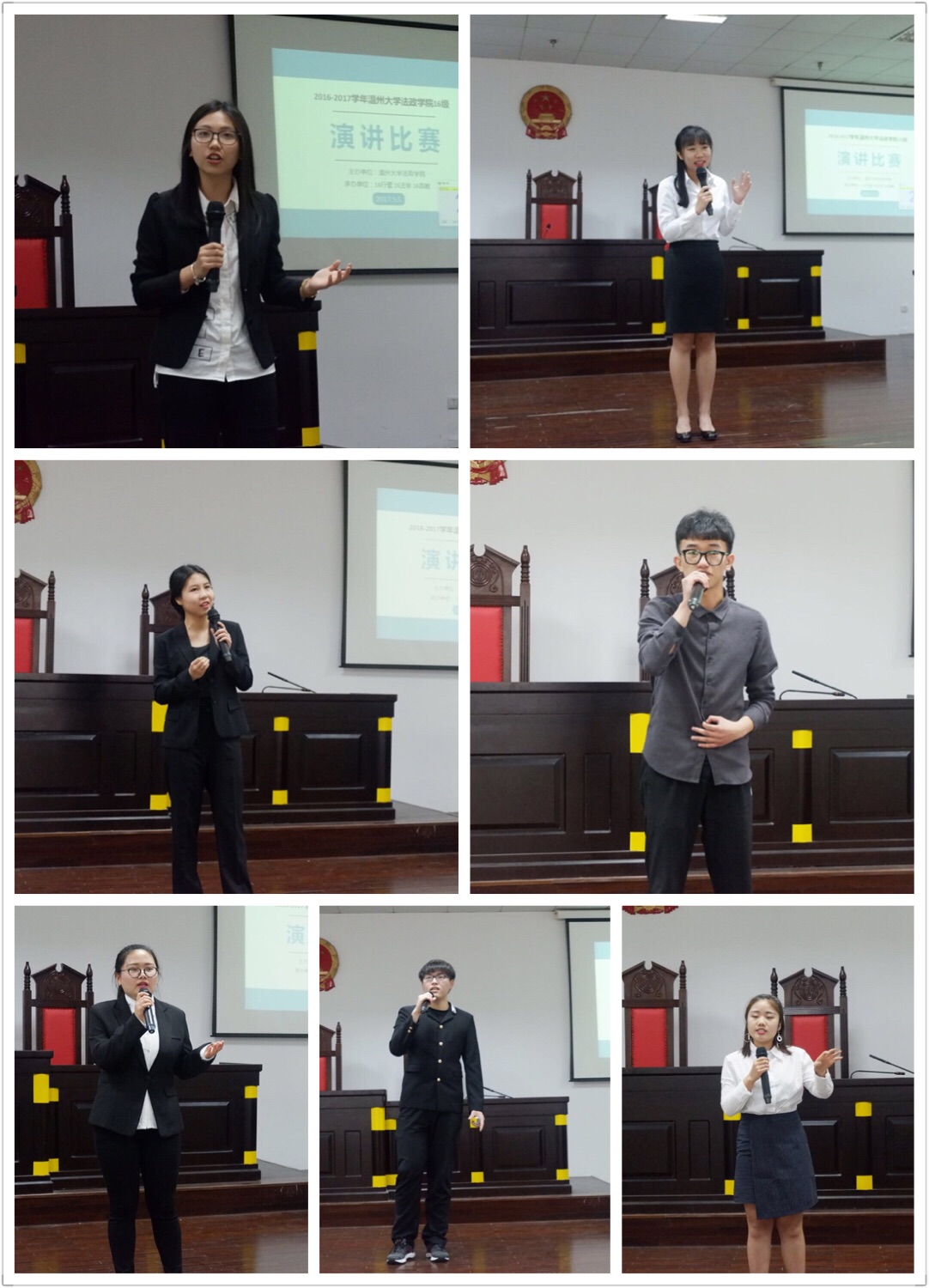 级演讲比赛决赛准时于下午一点半在北校八号楼模拟法庭举行。经过各专业初赛的激烈角逐,总共产生了十八位优秀的决赛选手。