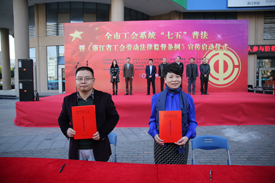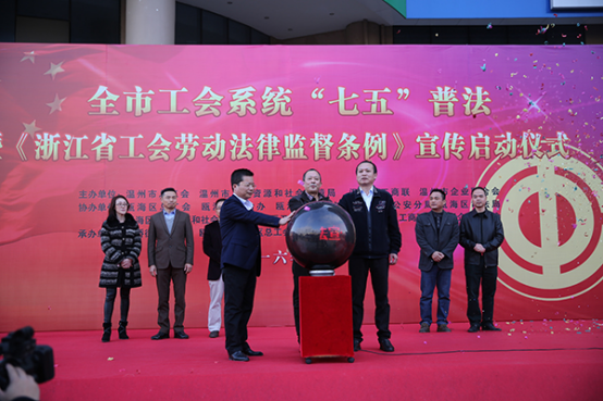 12月12日,全市工会系统"七五"普法暨《浙江省工会劳动法律监督条例》宣传启动仪式在瓯海娄桥工业园区举行。市劳动关系三方机制成员单位,瓯海区"八位一体"联合维护职工权益机制成员单位、三方机制成员单位、法律服务志愿队和企业职工参加。仪式结束后,现场开展法律宣传咨询服务活动,300余名职工参与,发放资料2000余份。