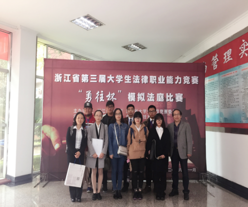 浙江省第三届大学生法律职业能力竞赛"勇往杯"模拟法庭大赛共有全省29所学校的32个队报名参赛。2016年11月10日至12日在金华职业金属学院举行现场比赛,经过分组两两比赛,每组前二名交叉再进行一等奖决赛,最终本届产生2个一等奖,6个二等奖,8个三等奖,我校法政代表队由法政学院法学系副主任谢丽珍老师、朱永德老师带领8名队员最终获得本次比赛的三等奖。