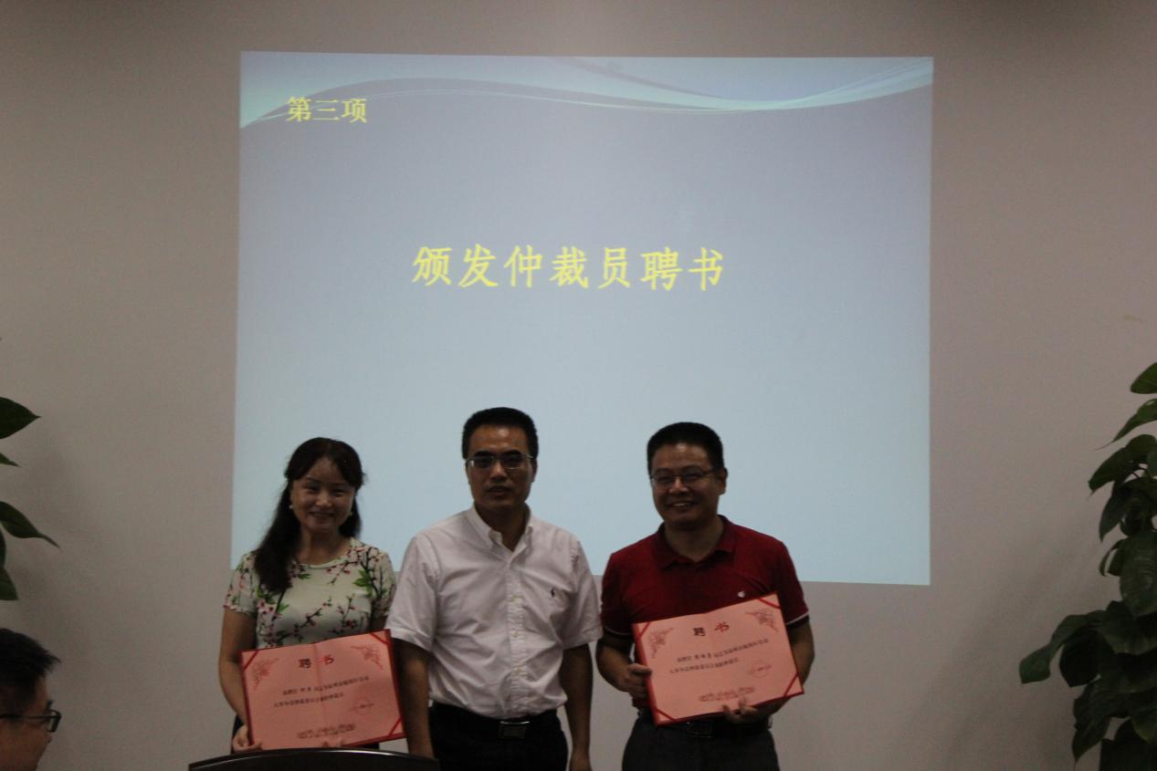 揭牌仪式由法政学院副院长缪心毫主持。瓯海区人力资源和社会保障局局长、瓯海区劳动人事争议仲裁委员会主任陈继林,温州市人力资源和社会保障局法规处副处长王震,瓯海区人力资源和社会保障局副局长、瓯海区劳动人事争议仲裁委员会副主任姜林,还有九色视频 法政学院班子成员及师生代表、温州市人力资源和社会保障局、温州市劳动人事争议仲裁院、瓯海区人力资源和社会保障局、瓯海区劳动人事争议仲裁院等单位代表共30多人也出席。陈继林局长亲自为高教园区高校的仲裁员代表颁发聘书。
