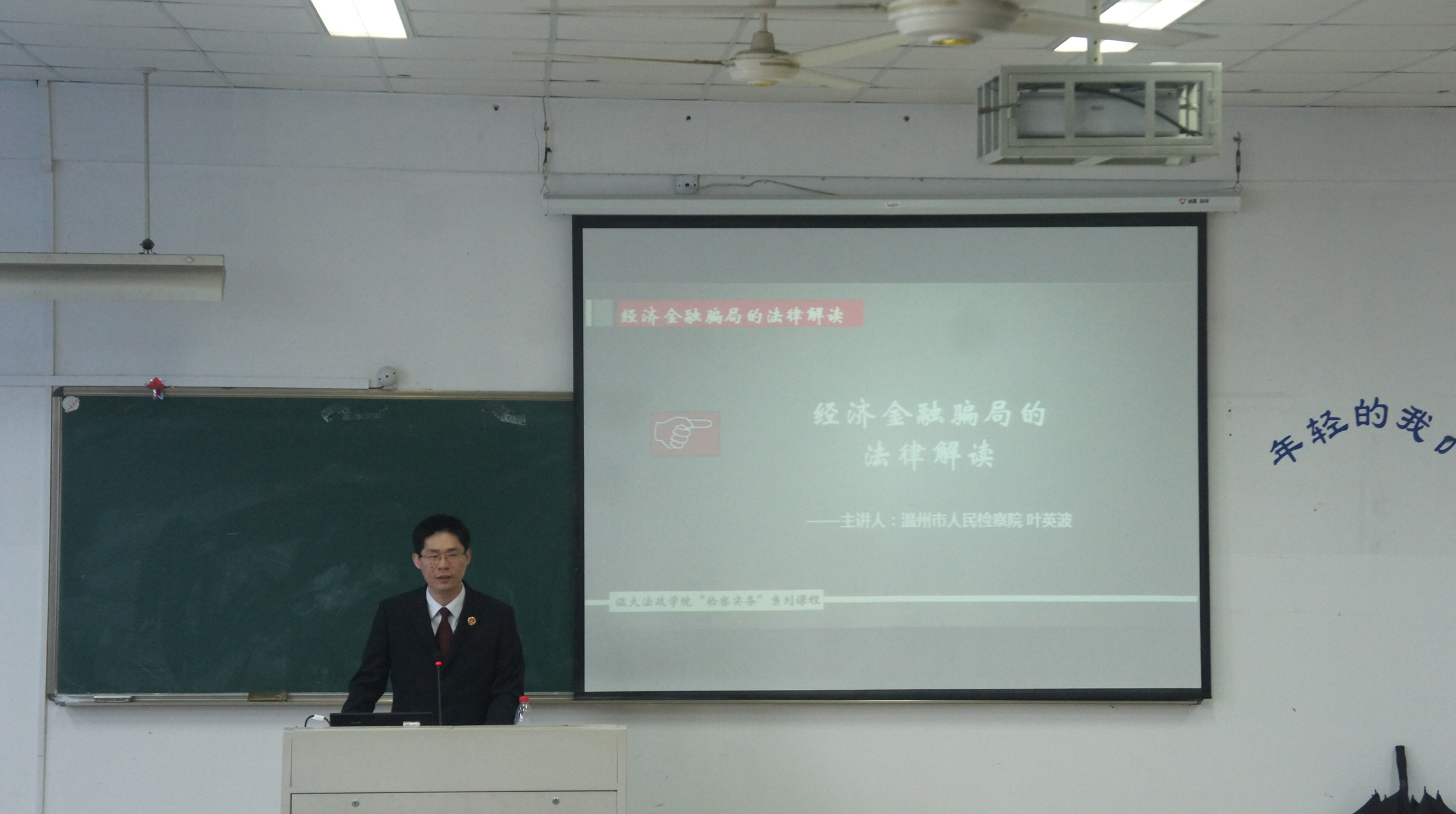 2016年4月21日下午1:30,浙江省优秀公诉人、温州市检察院叶英波检察官开启《检察实务》第五讲,讲座题目是"经济金融骗局的法律分析"。