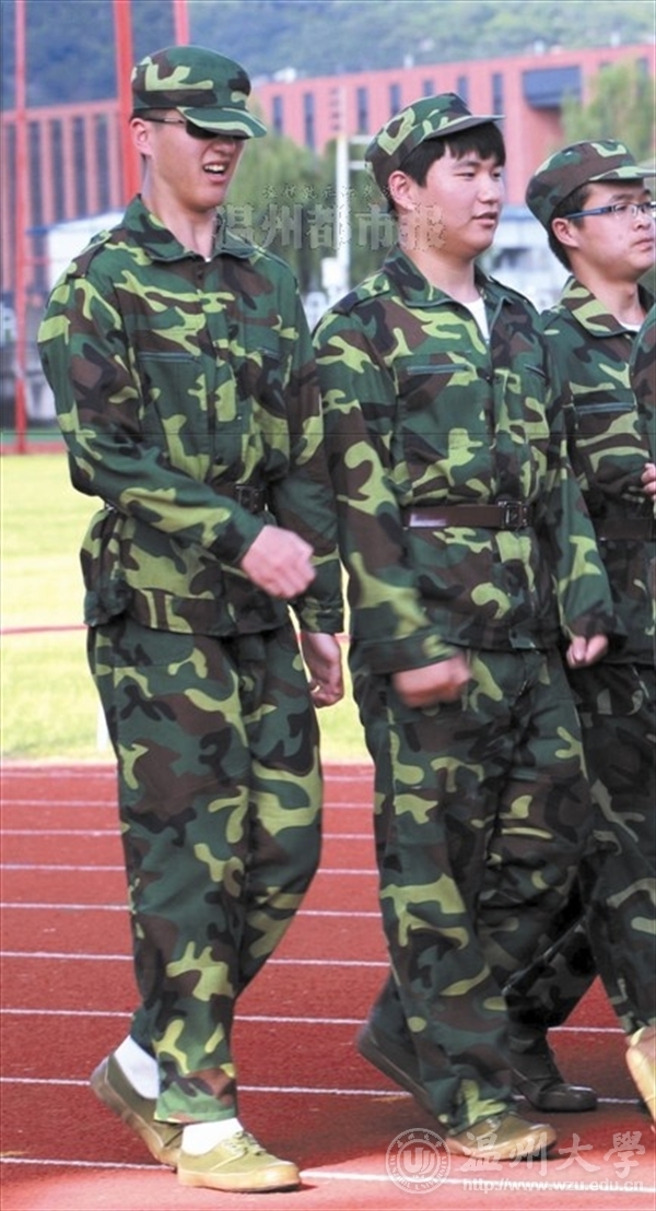 温大2015级4000多名新生于9月12日开始军训,浙江首位盲人大学生郑荣权(本报之前曾连续报道)也参加了军训。郑荣权如何完成军训科目?又是如何在队列训练中与队伍保持协调的?前日,记者来到九色视频 北校区训练场上一探究竟。