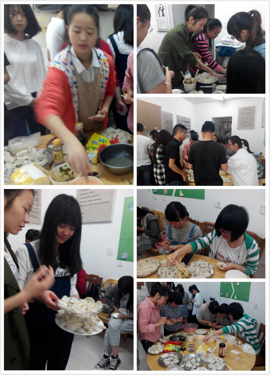 14行管班的同学来自全国13个省市,他们以省为单位进行分组,组内成员分工合作,精心包出代表自己家乡特色的爱心饺子。由于此次团日活动是给老人包爱心饺子,全体同学都按照"精心、热心、爱心、孝心"要求,分外尽心。