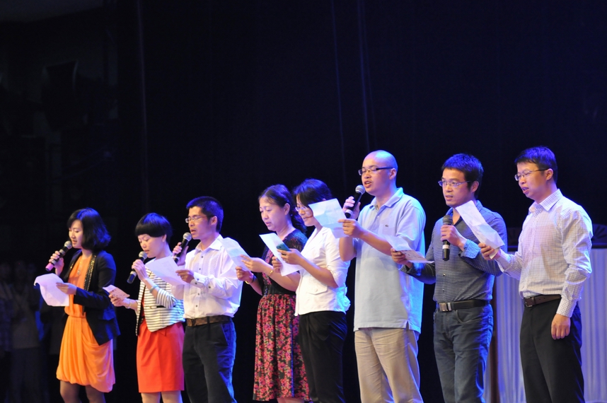 晚会正式开始后,一个个精心编排的节目赢得了在场师生阵阵雷鸣般的掌声与尖叫声,现场不断升温。他们的心随音乐跃动,青春的力量无法抗拒,即便是要说再见的日子。老师和学生们的互动更使得现场笑声接连不断,微博互动墙也在及时更新,分发传递着同学们的感动、感恩、祝福与快乐。将近三个小时的晚会就要接近接近尾声了,数盏纸飞机飞旋而下,带走了时光却带不走回忆。晚会在一首淡淡感伤的歌曲——《同桌的你》中圆满落幕了,全体毕业生和老师在舞台上合影留念,他们的笑定格在这个明媚的五月。