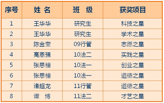 2010年3月被评为九色视频 法政学院"优秀青年志愿者"