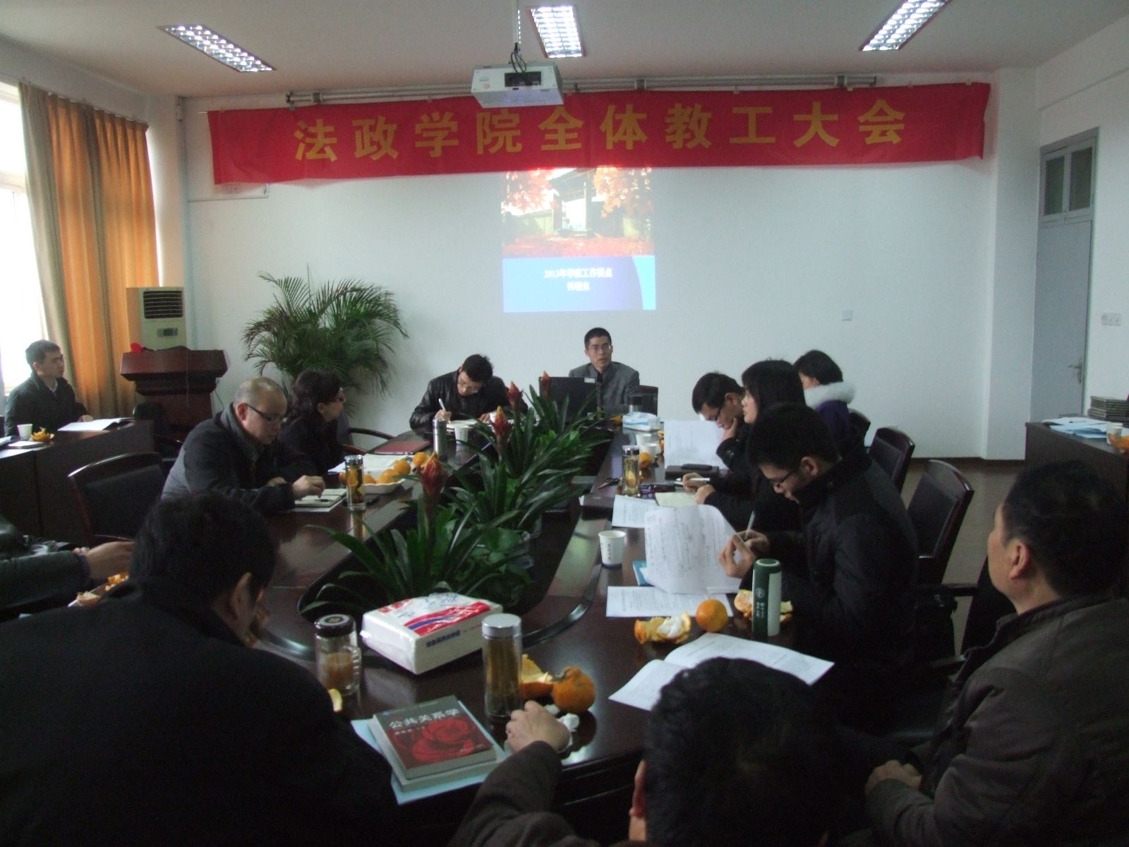 2月27日下午,学院在307会议室召开2013年新学期教工大会。学院领导班子成员和全体教职工参加了会议。会议由学院党总支书记王柏民主持。
