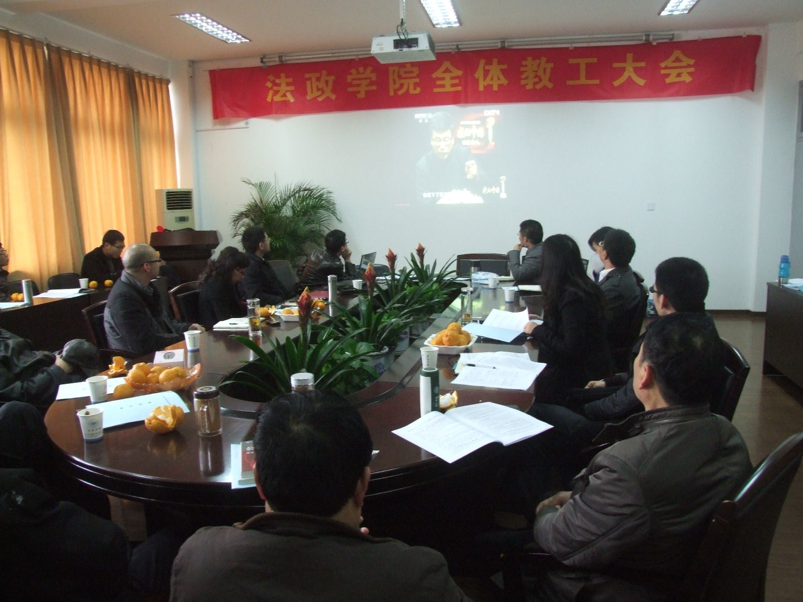 中央电视台于2月19日播出了《感动中国2012年度人物评选颁奖典礼》,节目播出后赢得了观众的广泛好评,在社会上引起了强烈反响。2月27日新学期伊始,法政学院即组织全体教师观看了央视《感动中国》——2012年度人物颁奖盛典,接力正能量。
