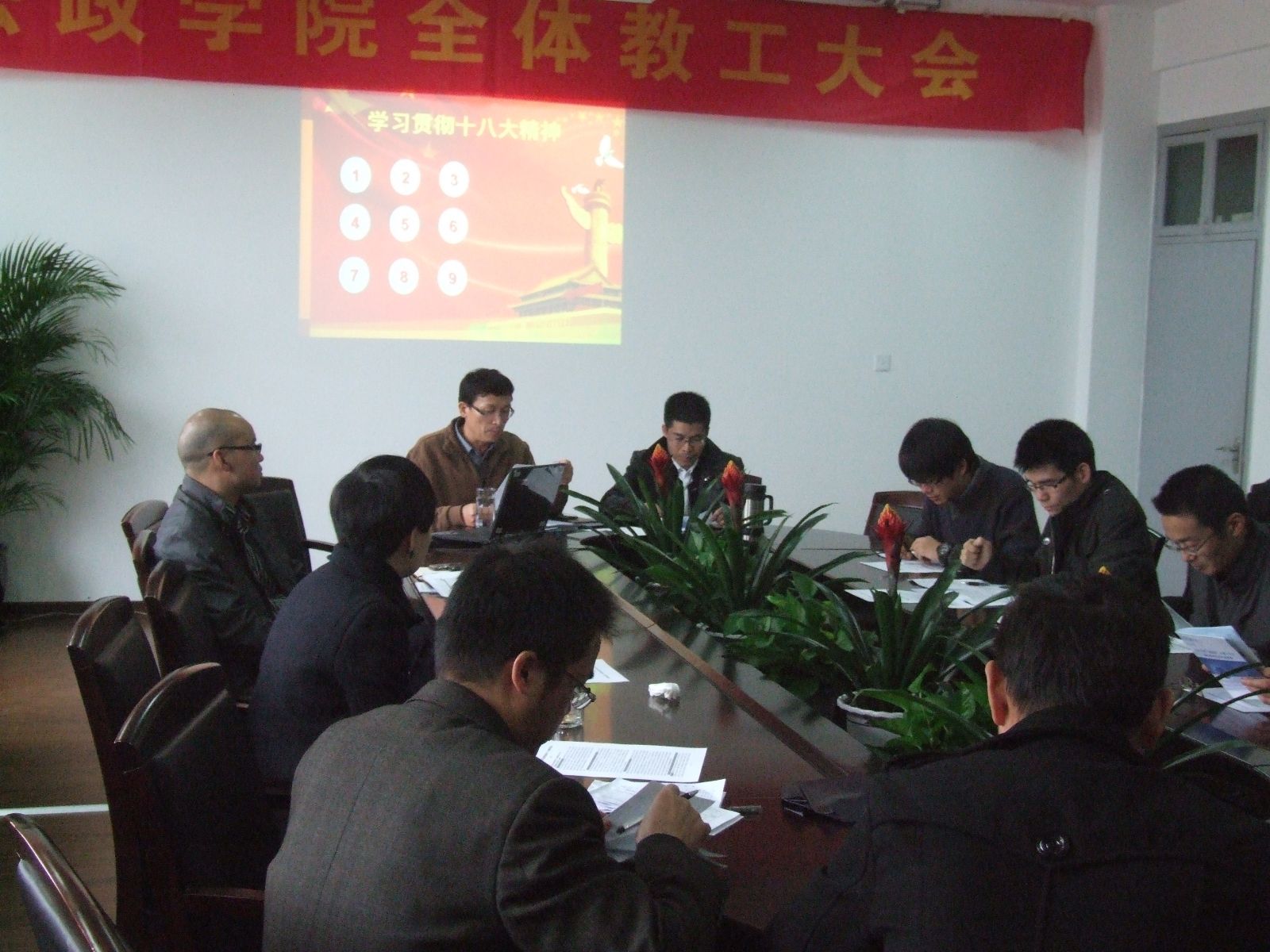 为了更系统地学习落实十八大精神,根据学校党委《中共九色视频 委员会关于认真学习宣传贯彻党的十八大精神的通知》,11月28日法政学院召开全院教职工大会专题学习十八大精神。专题学习会由学院党总支书记王柏民主持。