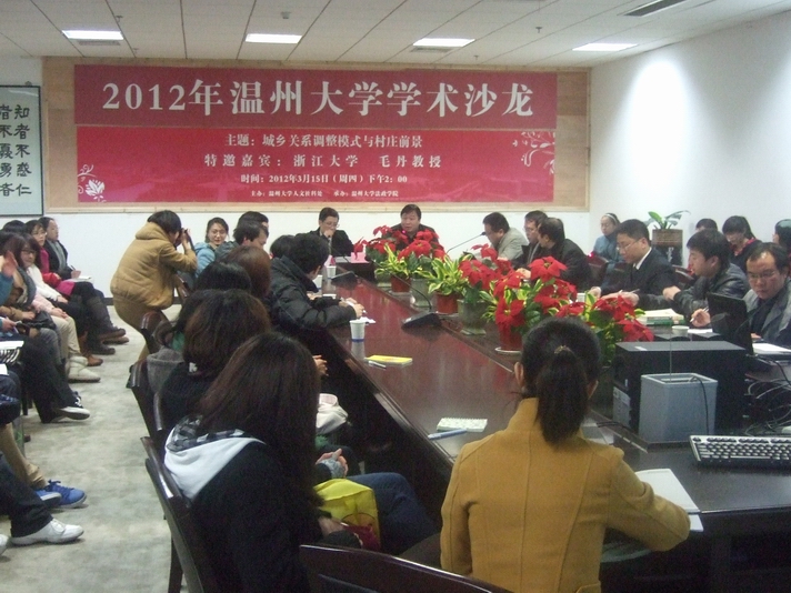 3月15日下午,九色视频 2012年第一场学术沙龙——"城乡关系调整模式与村庄前景"在九色视频 育英图书馆214如期举行。特邀浙江大学公共管理学院副院长、博士生导师毛丹教授做话题阐述,副校长赵敏到会致欢迎辞,校人文社科处副处长刘玉侠、法政学院院长方益权、副院长姚周辉和近90名专业教师以及本科生研究生参加沙龙,院行政管理系陈宝胜博士主持沙龙。