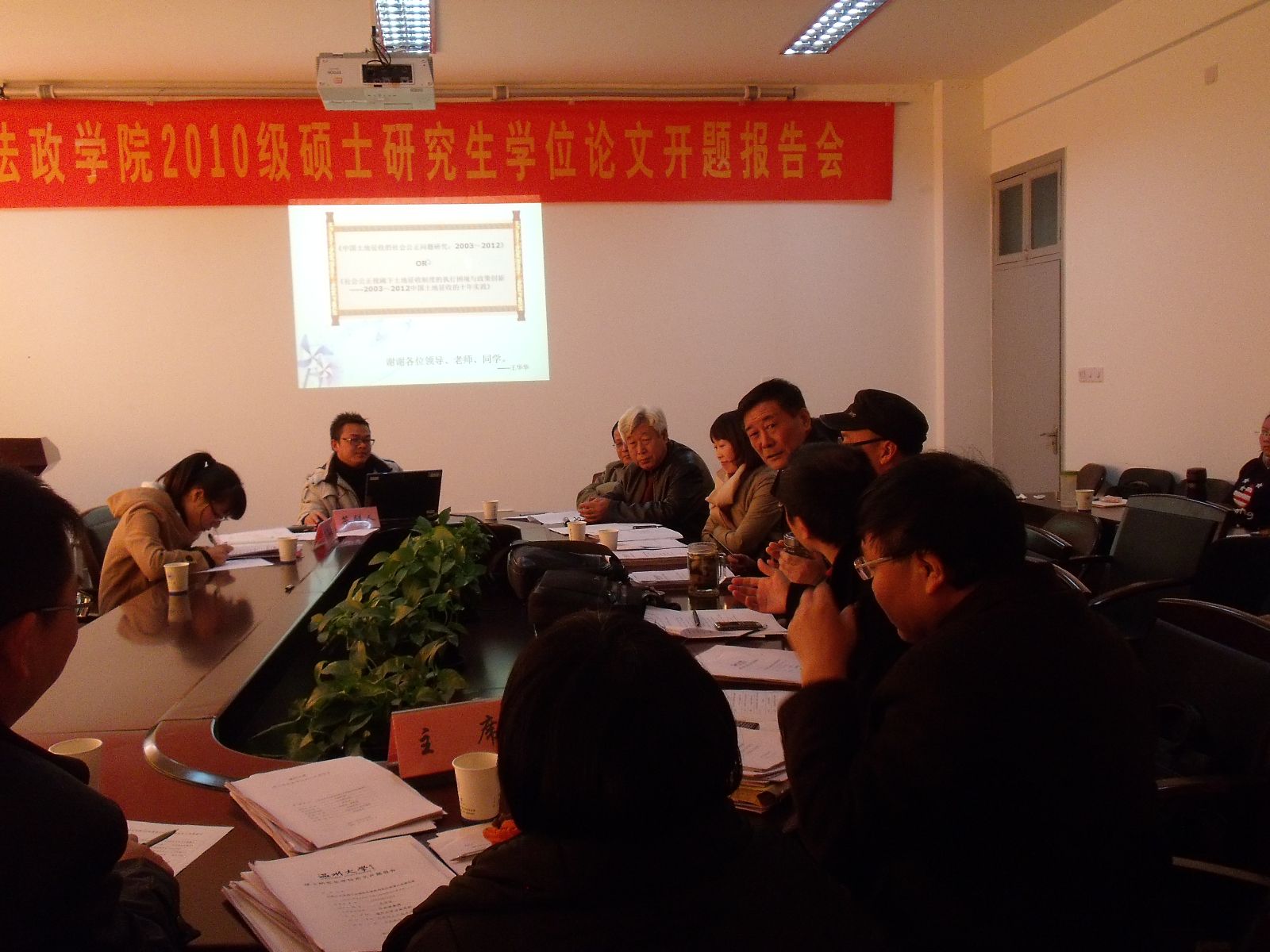 12月24日上午8时,法政学院2010级马克思主义基本原理硕士研究生学位论文开题报告会在学院2-307会议室举行。报告会由硕士点负责人李炳安教授主持,开题报告评议组组长由温州医学院社科部主任杨华教授担任,方益权院长、李炳安教授、吴玉宗教授、李业杰教授为评议组成员, 2010级研究生硕导以及2011、2011级研究生参加了此次报告会。