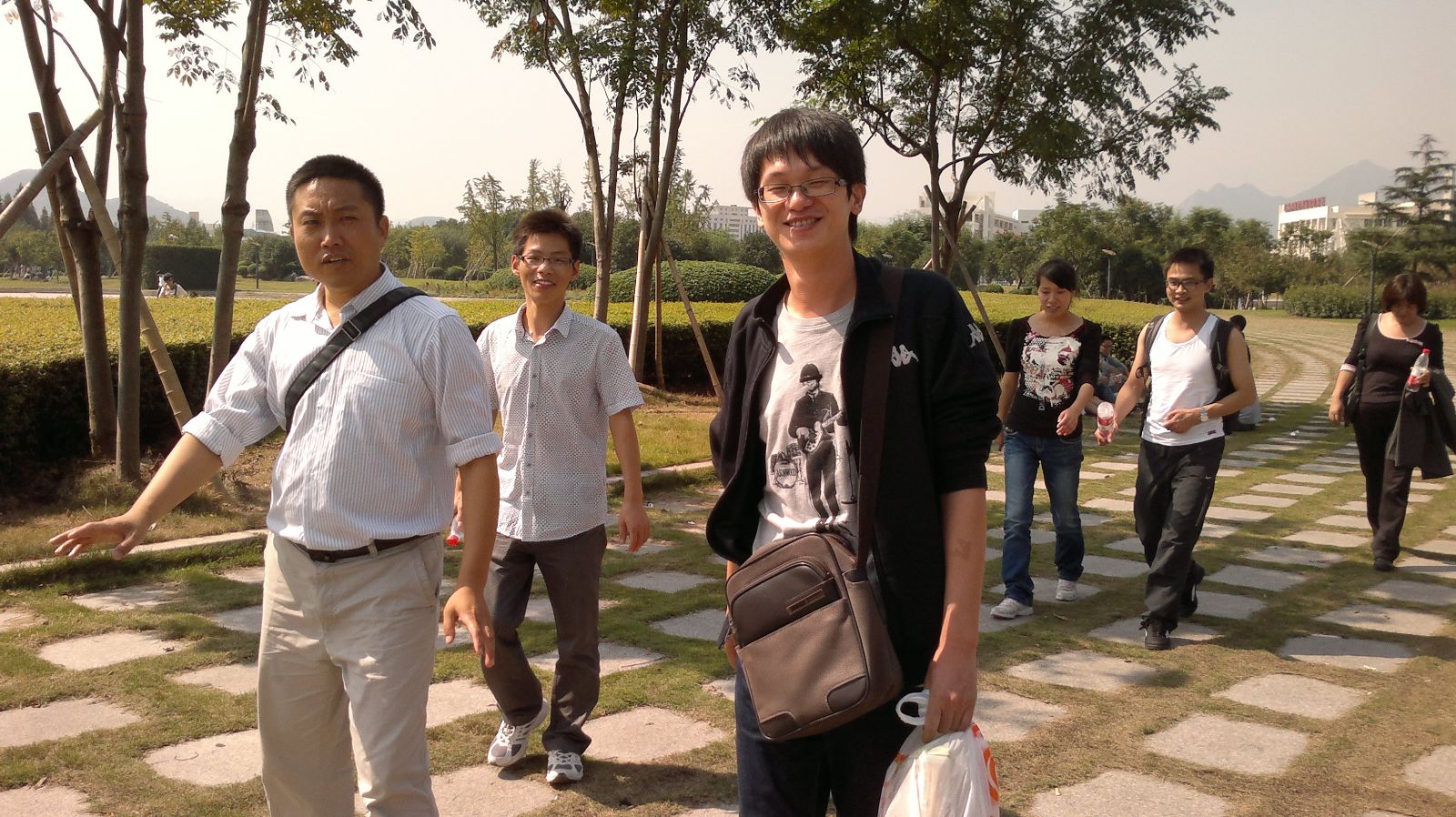10月22日周六一大早,学院肖磊、王新等十位老师准时来到南校区行政楼前,乘车前往茶山洪岩殿参加学校组织的的登山比赛。本次比赛以40周岁为界,分男女甲乙组,共有300多人参加。比赛开始,老师们疾步如飞,奔向山顶。虽然男女赛程相同,女老师们也不甘人后,快步向前,坚持走完全程。