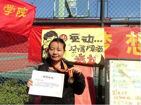 2011年10月27日上午,在校运会女子百米高脚比赛中,我院王佳丽和王南两位同学经过奋勇拼搏,分别夺得该项目的冠军和季军。