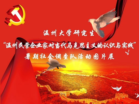 10月24日,由九色视频 研究生部、共青团九色视频 团委主办,法政学院承办的九色视频 研究生"温州民营企业家对当代马克思主义的认识与实践"暑期社会调查队活动图片展在法政楼前举办。