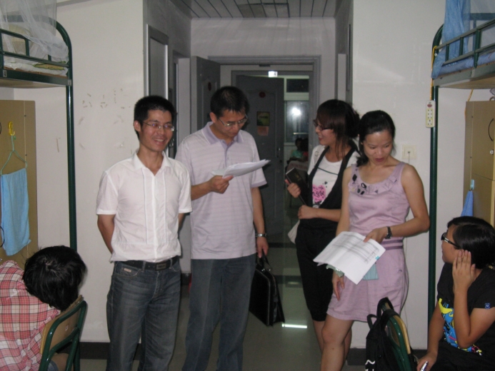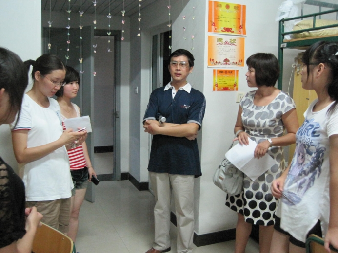 为及时了解2010级新生到校后的生活面貌,增进师生间的互动交流,鼓励新生主动适应新环境,9月9日晚,法政学院副院长姚周辉、钭晓东,党总支副书记严玲红带领新生班主任、辅导员、党员班主任助理等分组逐一走访了全院新生寝室。