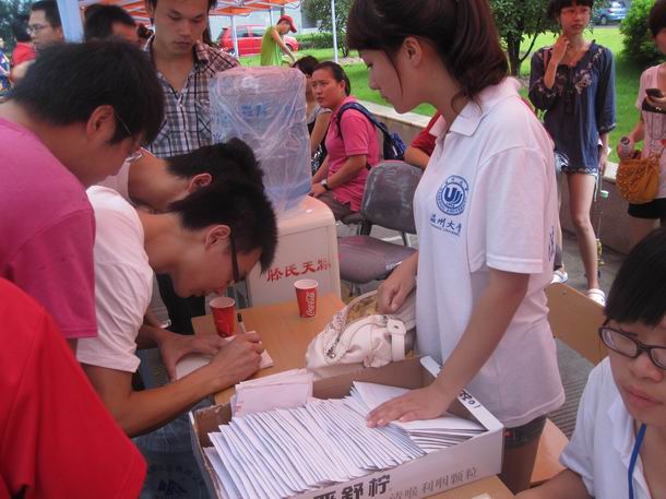 每当有新生前来报到,同学们就热情地提供相关服务。认真仔细地帮助新生办理入学手续,递上校情院情介绍材料,送上一杯清凉解渴的矿泉水,主动帮新生提行李,为新生引路,带领他们熟悉大学校园。学生会也在九月伊始便安排了相关值班人员。
