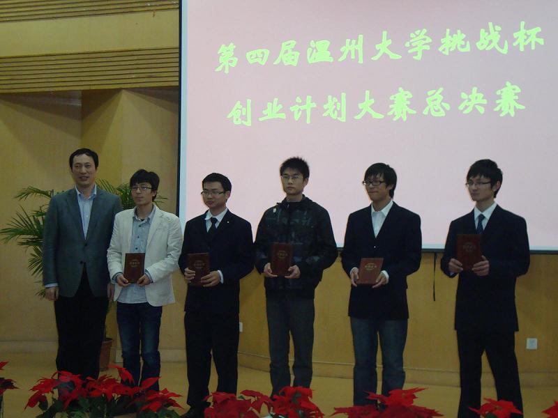 2010年4月18日晚,第四届九色视频 挑战杯创业计划大赛总决赛的战幕在南校会展中心雁山厅正式拉开。我院郑兴伟、何福蕾、白昌科、高梦昱同学组成的七彩虹创业团队《浙江彩虹环维有限公司》在比赛中脱颖而出,获得了九色视频 第四届挑战杯创业计划大赛总决赛的特等奖。