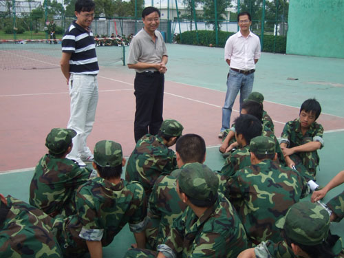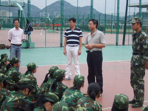 | 9月27日正是今年我校新生军训工作进行总结、提升和汇报表演预演、操练的关键时期。下午,法政学院党总支书记陈国治、副院长王柏民在学生科科长杨振海和辅导员孙德升的陪同下,专程赶到南校区运动场看望连日来风雨无阻、坚持训练的法政新生和部队教官。 训练场上法政学院全体新生精神抖擞,虽然训练中每个人都挥汗如雨,但仍是军容整肃。每个人的脸颊上分明都挂着刚毅和坚强的神情!看过同学们的操练和表演,陈国治、王柏民对学院新生的精神状态和训练情况进行了详细询问和深入了解,对大家的表现给与了充分肯定,对教官们的辛勤指导表示感谢,同时也不忘叮嘱大家军训期间要注意饮食卫生和身体健康,还叮嘱国庆放假后留校和返家的同学都要休息好和注意安全。学院领导最后预祝法政新生在即将到来的军训汇报表演中取得佳绩。 今年法政学院共有218名新生参训,按班级分别编排为军训团一营一连一排至四排。学院对新生军训工作高度重视,学院全面动员、统筹安排,确保了今年我院新生军训工作开展的有条不紊、扎实有效。