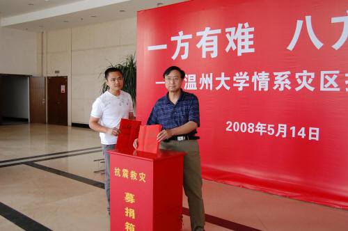 5月12日发生在汶川的大地震牵动着我们法政学院全体教职员工的心。为帮助灾区群众共渡难关、重建家园,老师们均积极参加到向灾区人民捐款的活动当中。100、200、300、500……,每一笔捐款都凝结着我们每一位教职工的牵挂和希望。陈怡老师在地震后的第二天就将2000元捐款送到了学院办公室,这也是截止目前我院最大的一笔捐款。 在捐款的同时,院领导、院工会积极询问、及时了解我院老家在西北地区(尤其是四川地区)的教职工家中的受灾情况。 截止目前,我院已累计捐款16400元,陈国治书记代表我院教职工将这第一笔捐款已送交到了校工会,捐款还在继续。我们相信,这些饱含着爱心的捐款,将给灾难中的同胞带去废墟中重建家园的勇气和力量! 让我们携手同心、众志成城,与灾区的同胞同渡难关,早日赢得抗震救灾的胜利!