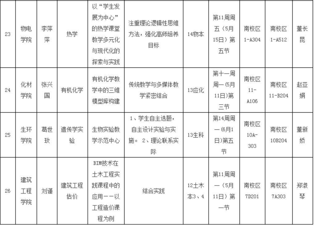 为了推广教师教学改革的成果,提高教改的实效,让教改的成果惠及更多的学生,本学期学校结合课堂教学改革、专业建设、实验教学示范中心等各种教学改革研究项目,经由学院推荐,共遴选了26堂教改示范课,并首次推出公共选修课、实验(实践)教学课程供全校教师学习、观摩。