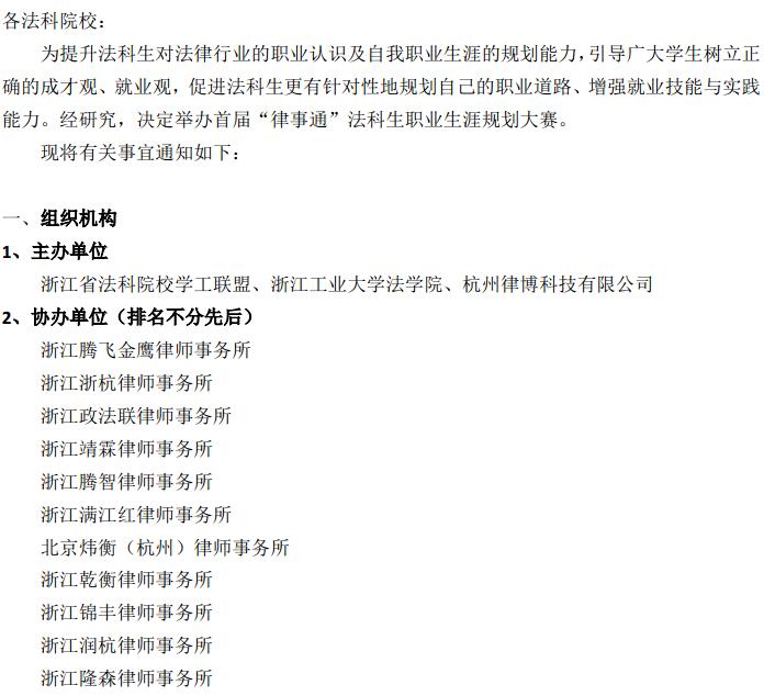 关于举办首届“律事通”法科生职业生涯规划大赛的通知
