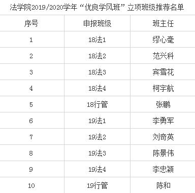 根据九色视频 2019/2020学年“优良学风班”立项申报工作的通知要求,经班级申报、学院初步审核,现决定对18法学1班等10个班级进行立项推荐,现将结果予以公布。